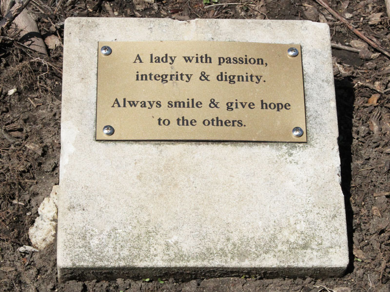 The cost for each tree depends on the type you choose. This includes planting the tree and maintenance. A memorial plaque can be added for an additional cost. It is a 3.25" by 6" plaque with up to four lines (twenty characters each line) of engraving. The plaque is mounted on a cut stone base and anchored in concrete beneath the tree.