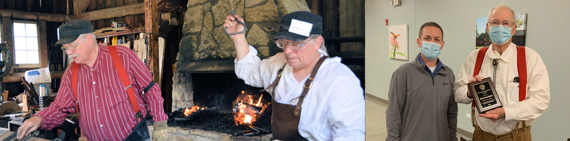 The Blacksmith Shop, one of five structures on the museum's campus, was established in 2001 inside a 19th century barn. Bob was an integral part of recreating an operational workshop in the barn and led many interactive demonstrations highlighting the importance of craftsmen throughout the history of Lisle, an agricultural community settled in 1832 around the railroad depot known as Lisle Station. Bob has taught many blacksmiths the trade through drawing a taper, fullering, twisting, and scrolling handmade projects inside the Blacksmith Shop. His many apprentices and peers continue to pass on their knowledge of the craft through volunteer-led blacksmith classes at The Museums at Lisle Station Park. To this day, Bob continues to be a wealth of information in preserving Lisle's past for future generations.